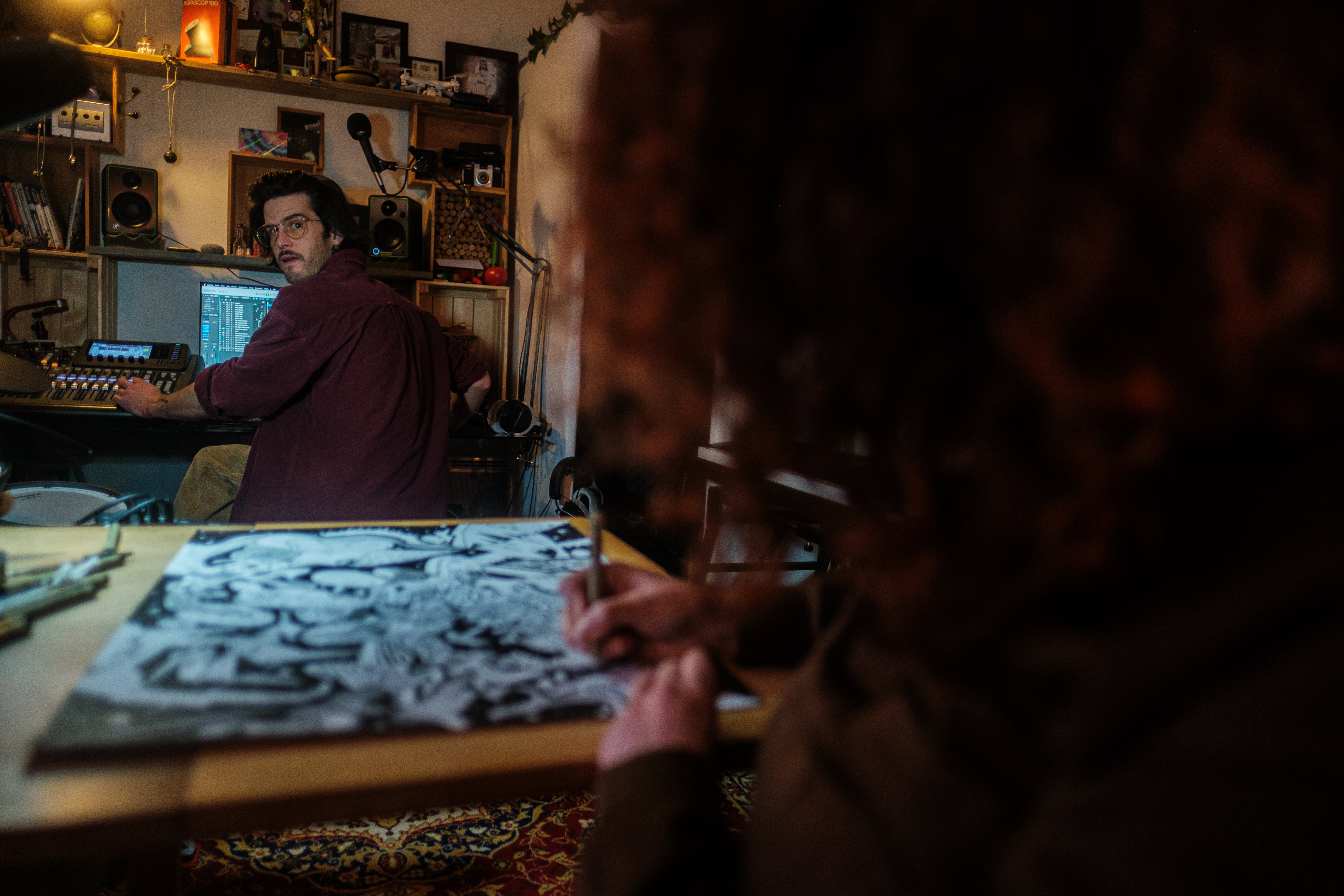 Pensant s’être complètement accordés artistiquement, le couple ne s’était pas encore attardé sur la passion commune de leur enfance : le dessin.