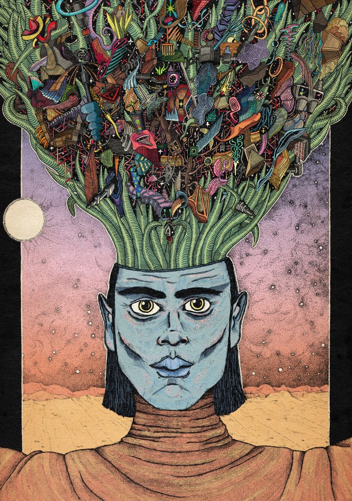 Ce personnage étrange semble de marbre, le visage creusé et la bouche muette la plupart du temps, il voyage dans son esprit et il est très rare de le croiser physiquement, son corps n’étant qu’une enveloppe artificielle.